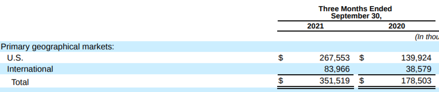 우선 Revenues의 성장(QoQ+11%, YoY+97%)은 엔페이즈의 마이크로인버터 제품인 IQ7의 영향이 큰 것 같습니다. 실적 발표 전에도 유럽으로의 수출 공시가 몇 개 나왔었는데 이번 분기에서 역시 미국 외에 International 매출액이 2배 이상 성장하였습니다(아직 미국 매출이 압도적이긴 하지만).
