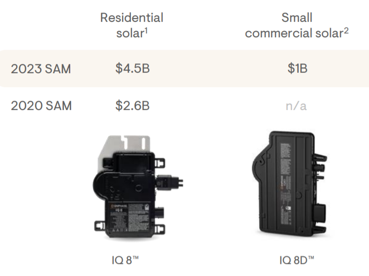 마이크로인버터 IQ8은 배터리가 없어도 선라이트 백업을 제공하여 더욱 안전한 수요관리를 가능하게 합니다. 엔페이즈가 밝힌 거주용 IQ8(IQ8 TM)의 예상 SAM는 20년 2.7B, 23년 4.5B이며, 상업용 인버터인 IQ 8D의 SAM는 23년 1B입니다.