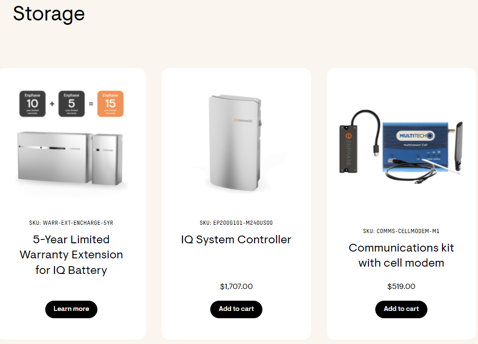 실제로 Enphase는 ESS를 직접 판매하고 잇습니다. 인버터 설치는 결국 일회성 판매이익이지만, ESS와 EV 사업을 활용한 "전력관리 서비스 플랫폼"을 제공함으로써 장기 현금흐름을 창출하겠다는 것이지요.