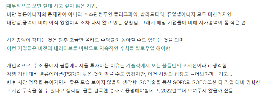 현재 제시한 비전들과 국가의 정책 서포트 등 좋은 모습을 기대할 만한 기업으로 남아있다.