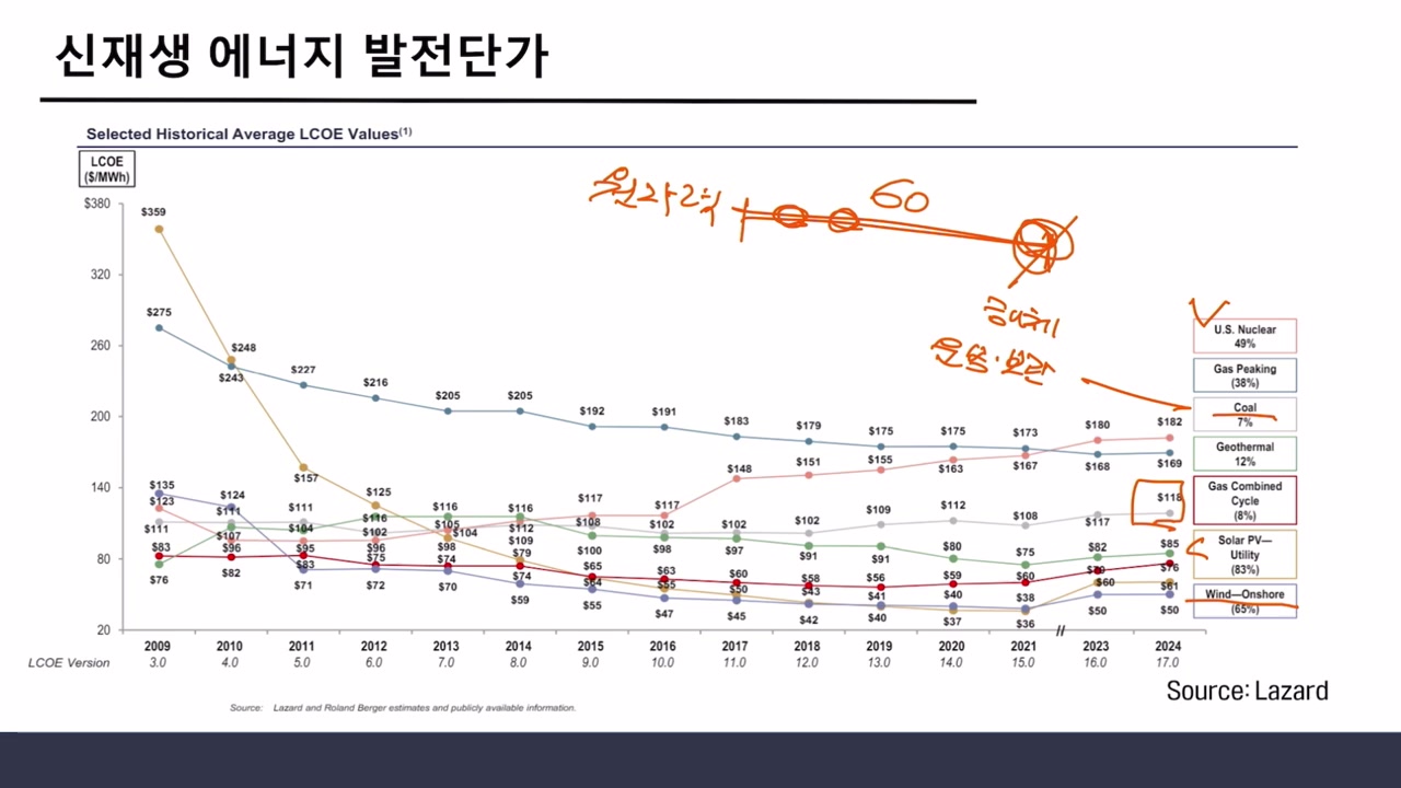 원자력은 초기 운영비용이 낮다고 하지만 해체비용까지 고려하면 실제로는 많이 나와요.