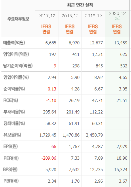 대체적으로 매출 비중이 Balance가 맞지 않다는 점이 조금 아쉬운 점입니다. 수출 비중이 높아 환위험에도 일부 노출되어있다고 볼 수 있습니다. 다만, 내수가 국내 굴지의 대기업이라는 점과 해외 스마트폰 렌즈의 시장이 국내와는 다르게 성장 추세에 있다는 점은 좋은 부분이라고 생각합니다. 그러면 좀 더 구체적으로 재무제표를 들어가 보도록 하겠습니다.